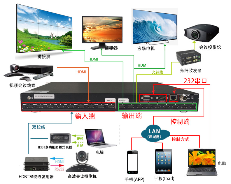 科睿视HDMI高清矩阵是我司倾力打造的新一代HDMI矩阵,是一款支持手机控制、iPad控制、WEB双向控制及APP集中管理的